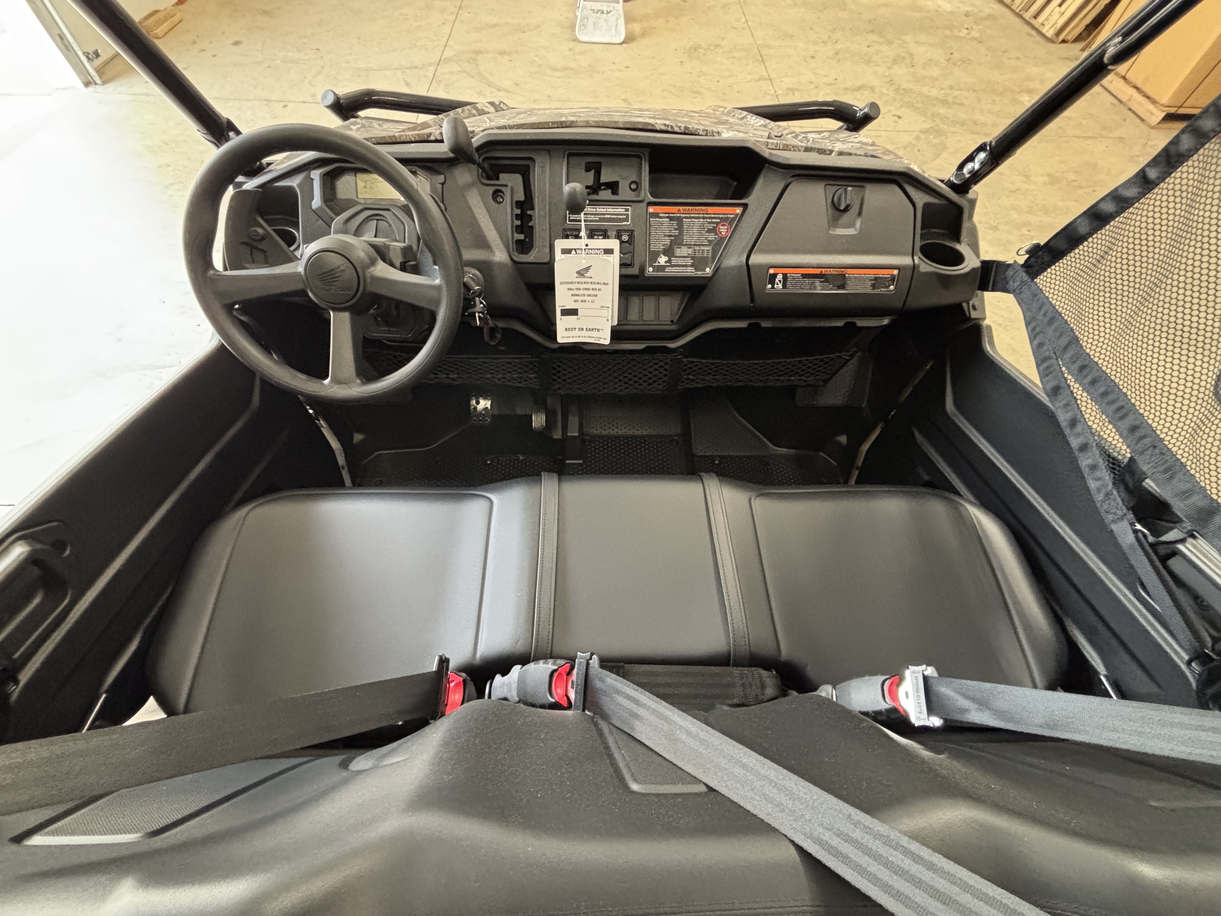 This practical under-dash shelf is standard on the Deluxe, Trail, and Forest editions and an available accessory on the standard 1000. It keeps frequently used items right up front in the cab.