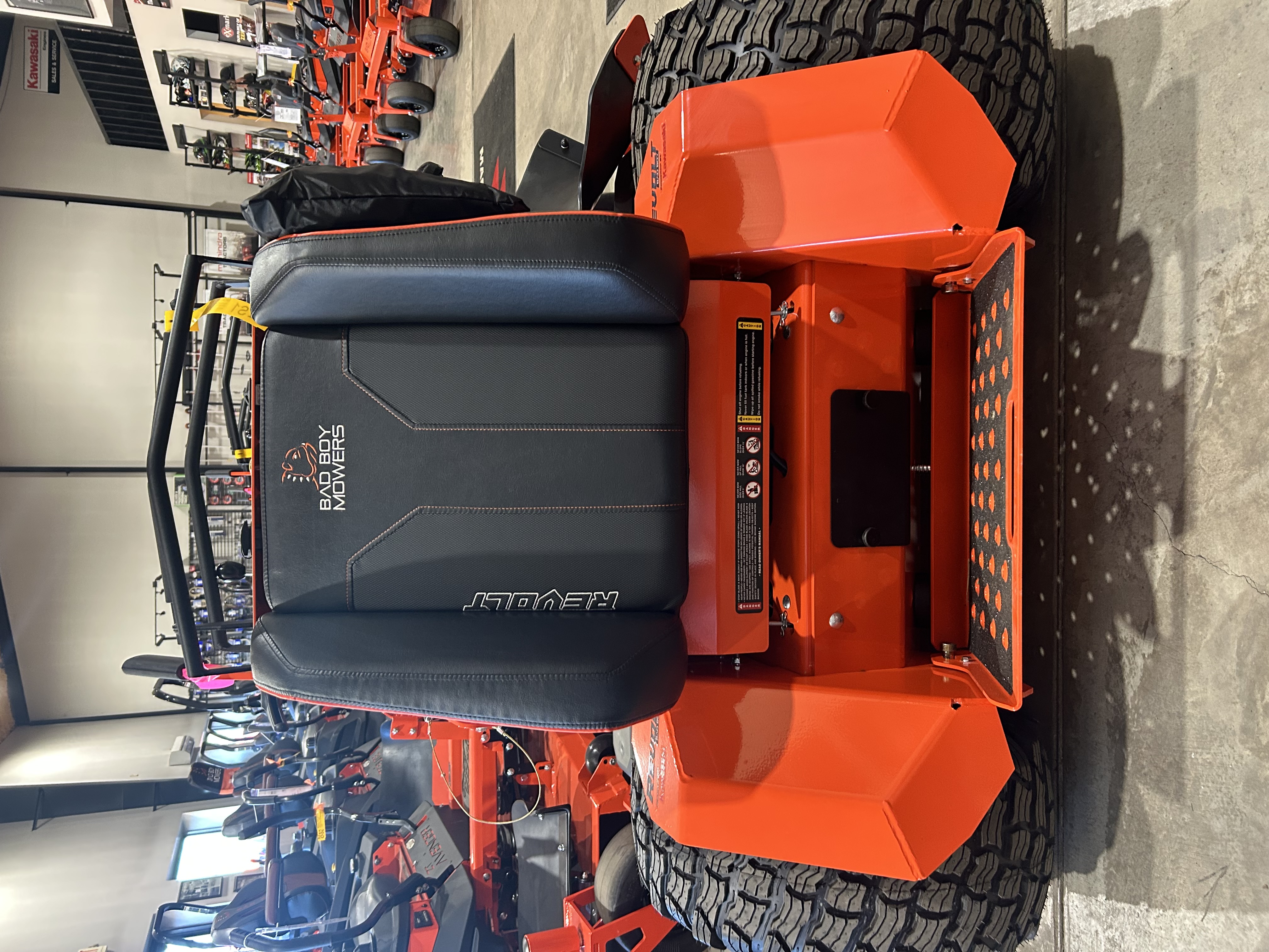 The thigh pad also flips up, giving you easy access to the battery, control arms and hydro tanks. Revolt also features a quick-access panel so you can reach the deck and drive belts with ease. Only Bad Boy could make routine maintenance this comfortable.